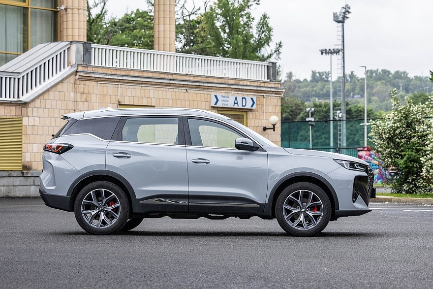 Снаружи «эльку» можно узнать по головной оптике от старшего Tiggo 8 Pro Max и решётке радиатора, как у флагмана Tiggo 9. Появились новый капот и бампер с противотуманками, а с передних крыльев пропал бесполезный декор. Корму украшает новая светотехника, над которой теперь расположена надпись Chery. Номерной знак переехал с бампера на багажную дверь, а фейковые выхлопные патрубки исчезли вовсе. Цветов кузова теперь семь, причём с белым и красным можно заказать контрастную чёрную крышу. Странно, что тонированы только задние боковые окошки, а стёкла дверей – нет.