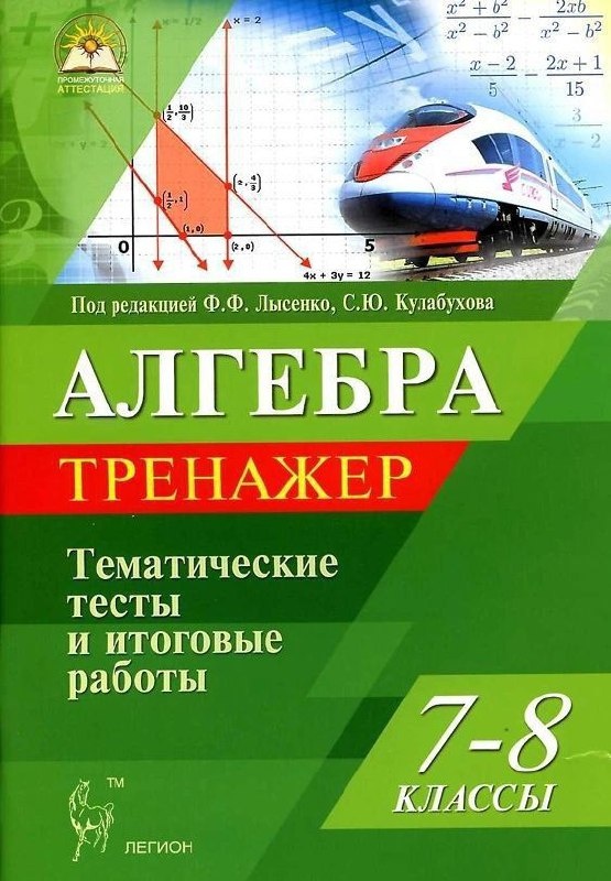 Ф. Ф. Лысенко, С. Ю. Кулабухов. Алгебра, 7-8 классы. Тренажер : тематические тесты и итоговые работы В книгу включены задания по следующим разделам: числа и вычисления, буквенные выражения, уравнения, неравенства, функции, текстовые задачи, множества, комбинаторика, элементы теории вероятностей и статистики. Пособие состоит из 15 параграфов, содержащих подготовительные задания для отработки каждой темы и тренировочные варианты для самостоятельного выполнения. #учебник #алгебра