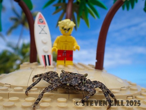 Тропический рай от Steven Gill 🌴 Смотрите, какой крутой пляжный сет от Стивена Гилла! Серфер готов покорять волны, пальма шелестит на ветру, а самый настоящий LEGO-краб дополняет атмосферу. Детализация на высоте — сразу чувствуется морской бриз и шепот волн. Идеальный способ добавить кусочек лета в коллекцию! 🏄♂️ Источник: Flickr Lego group