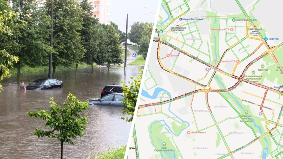«Партизанский плывёт» — Минск встал в 10-балльных пробках из-за ливня — Видео