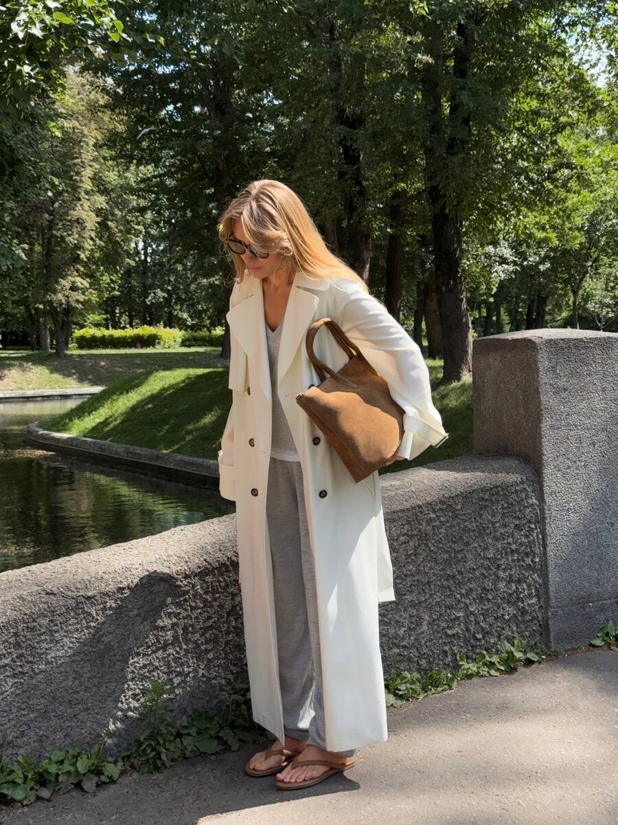 Лето не всегда про зной и солнце. Иногда оно про прохладу по утрам, сырой воздух и серое небо за стеклом Для таких дней — тренч из шерсти. Он держит форму, но не давит. На подкладке, с четкой линией плеч и длиной, которая уравновешивает весь образ. Подходит к трикотажу, платьям, широким брюкам — и к тем дням, когда хочется тишины и собранности Уже в продаже — на сайте, в приложении и наших магазинах 12 STOREEZ