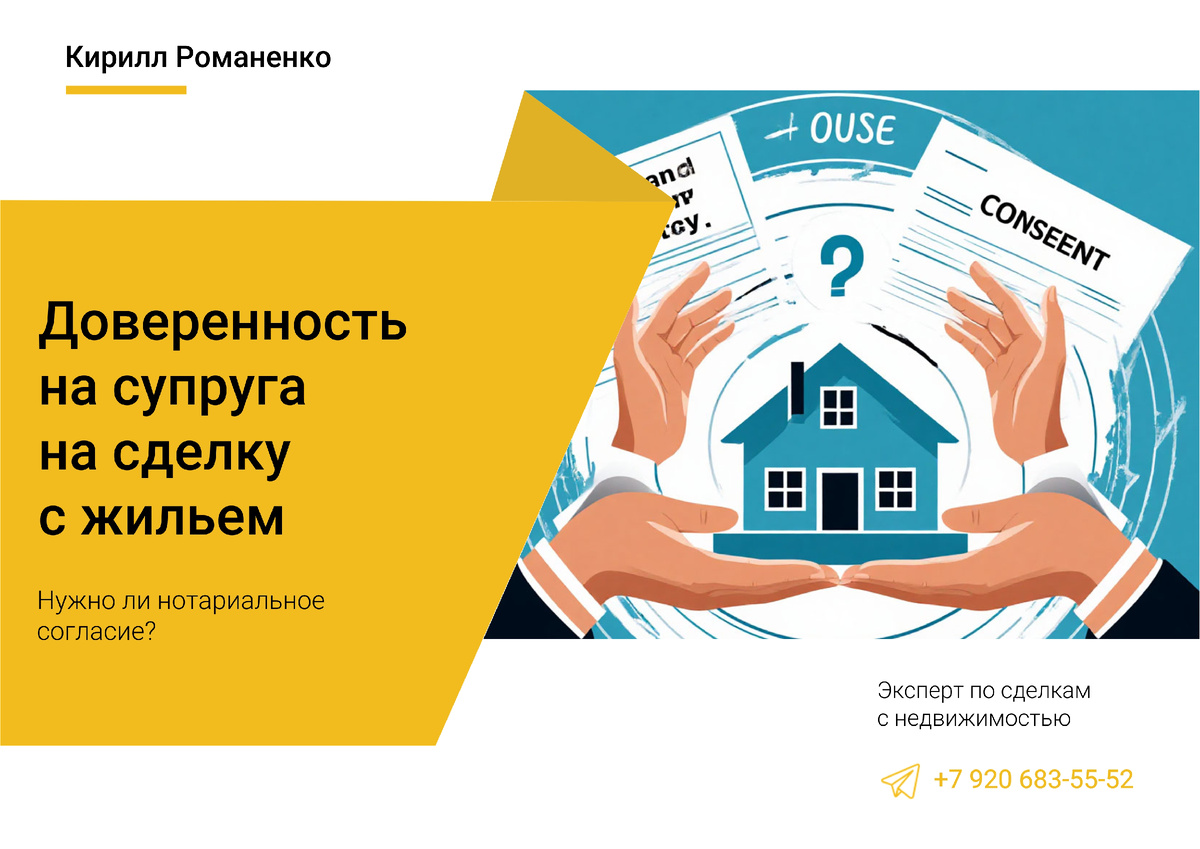 Для сделок с общей недвижимостью (продажа, дарение, ипотека, рента и т.д.), где регистрируется переход права собственности, обязательно нотариальное согласие второго супруга. Это закон. Почему доверенность НЕ заменяет согласие? Доверенность — разрешает представлять одного супруга при сделке. Согласие — это личное разрешение второго супруга на саму сделку с их общим имуществом. Его нельзя оформить по доверенности за другого человека. Ключевое: Согласие обязательно при сделках с переходом права на общую недвижимость. Доверенность (даже на сделки) не отменяет необходимости этого согласия. Без нотариального согласия сделка рискует быть признана недействительной в суде. Недвижимость, купленная в браке, всегда считается общей совместной собственностью, даже оформлена на одного. Итог: Для законной сделки с общей недвижимостью нотариальное согласие супруга незаменимо, доверенность его не заменит. 📍 Ваш гид по недвижимости Твери