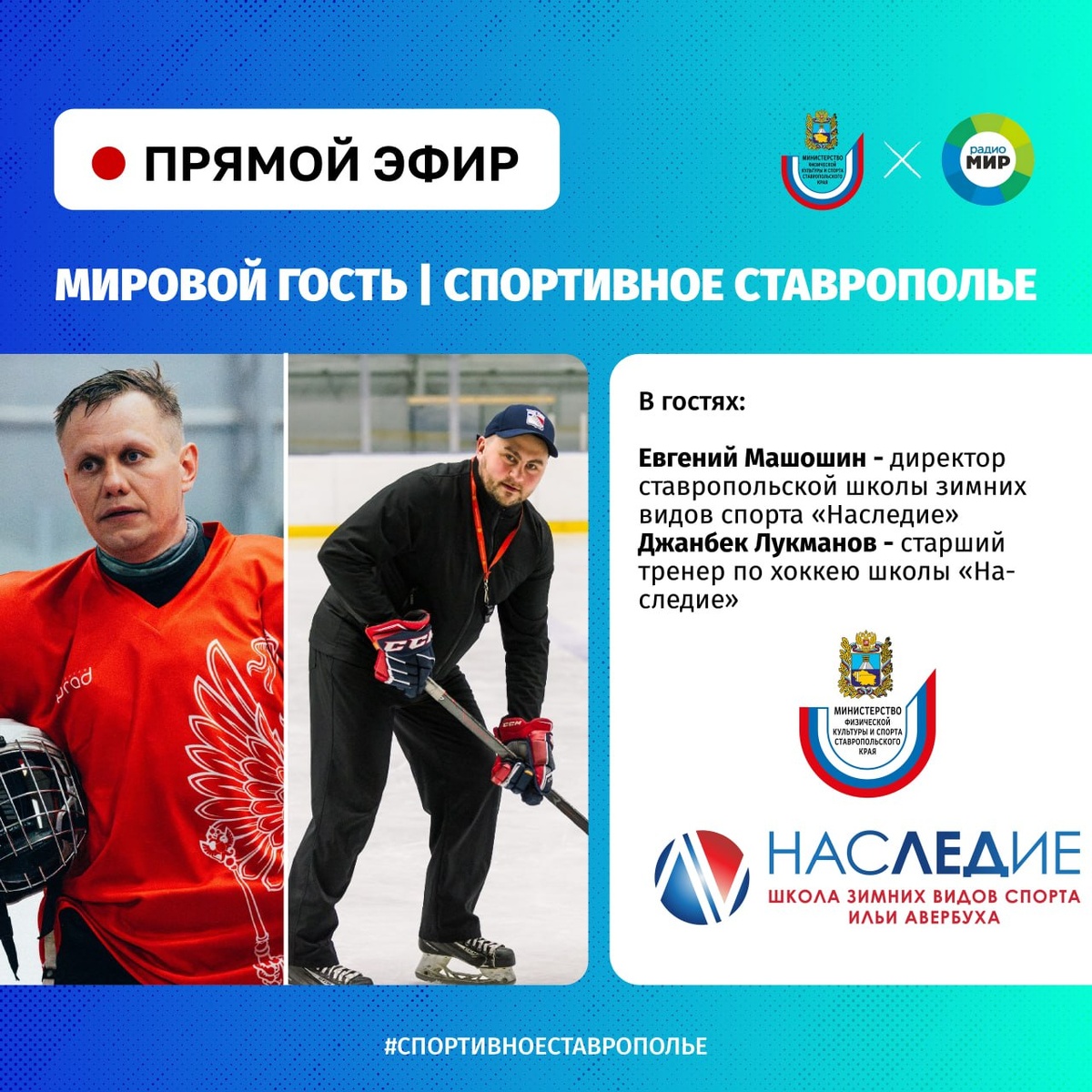 Мировой гость. Спортивное Ставрополье»: дубль 33! Ставропольская школа зимних видов спорта Ильи Авербуха «Наследие» завершила очередной, уже четвертый сезон. Каким он стал для одного из ведущих спортивных учебных заведений края? Об этом пойдет речь в программе «Мировой гость. Спортивное Ставрополье» в прямом эфире на волнах «Радио МИР-Ставрополь». Очередной, уже 33-й выпуск совместного проекта министерства физической культуры и спорта ставропольского края и «Радио МИР-Ставрополь» увидит свет в среду, 16-го июля. Гостями студии станут директор ставропольской школы зимних видов спорта «Наследие» Евгений Машошин и старший тренер по хоккею школы «Наследие» Джанбек Лукманов. Не пропустите прямой эфир с 15 до 16 часов на волнах «Радио МИР-Ставрополь»!