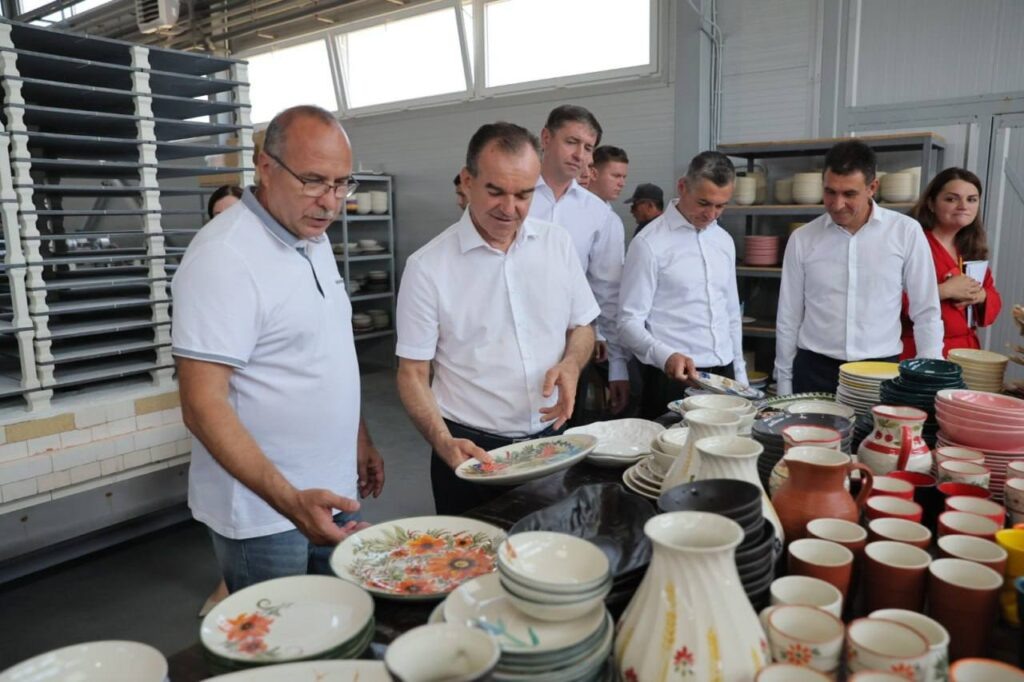 Губернатор Краснодарского края Вениамин Кондратьев посетил два промышленных предприятия в Красноармейском районе. Свою рабочую поездку он начал с завода в станице Марьянской, который уже более 15 лет выпускает бензиновые и дизельные электрогенераторы, а также трансформаторы. Продукция востребована по всей стране, а конструкторское бюро предприятия самостоятельно разрабатывает новые модели. После ухода иностранных компаний предприятие оперативно перестроилось и локализовало производство до 80%. В планах увеличивать этот показатель и расширяться. Окажем содействие, — написал Вениамин Кондратьев в своём телеграм-канале. Кроме того, губернатор побывал на производстве керамических изделий в станице Ивановской. Компания создала полный цикл производства. Несмотря на высокую степень автоматизации, именно ручная работа мастеров придаёт готовым изделиям – стаканам, тарелкам и кувшинам – особый вид и колорит. Кондратьев подтвердил готовность поддерживать планы по расширению, чтобы кубанская керам
