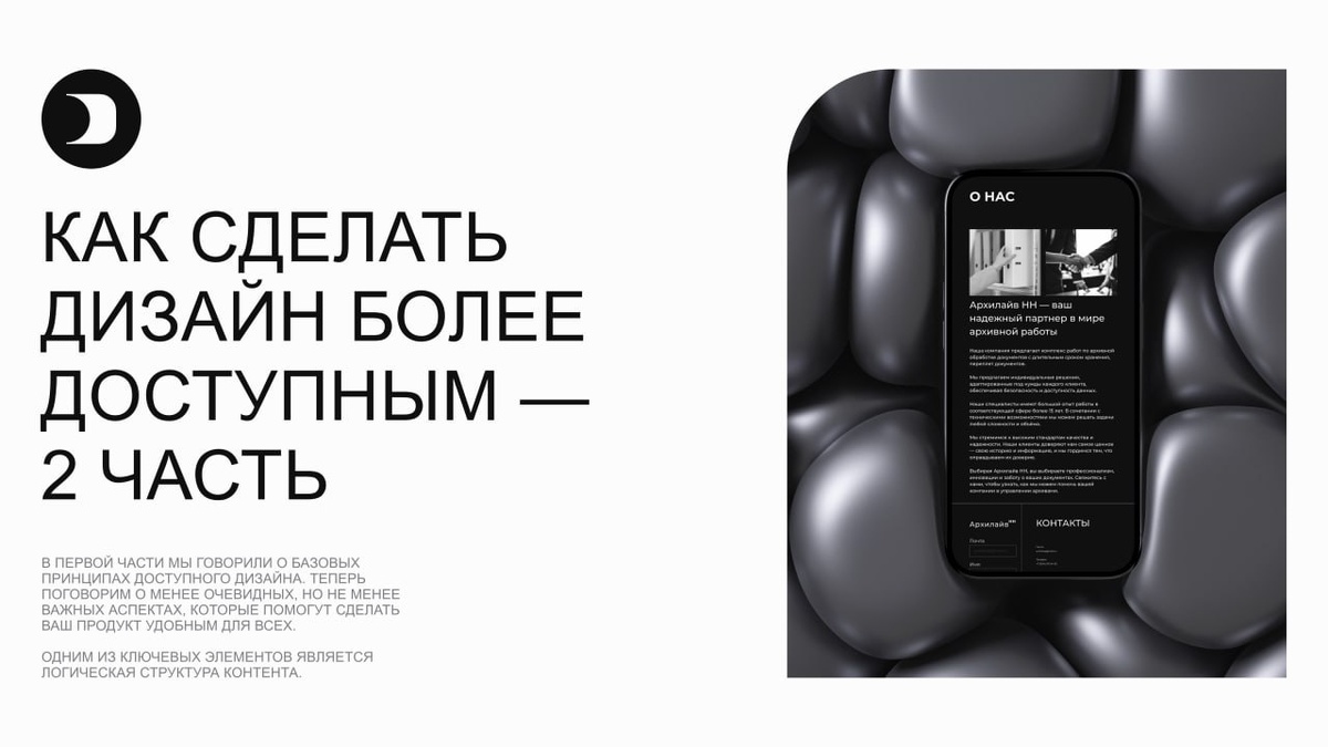 📚 Как сделать дизайн более доступным — 2 часть В первой части мы говорили о базовых принципах доступного дизайна. Теперь поговорим о менее очевидных, но не менее важных аспектах, которые помогут сделать ваш продукт удобным для всех. Одним из ключевых элементов является логическая структура контента. Пользователи, пользующиеся скринридерами, зависят от правильного использования заголовков, списков и разделителей. Избегайте «плоского» текста — структурируйте его с помощью HTML-тегов, чтобы скринридер мог корректно читать информацию. Адаптивность и масштабирование также играют важную роль. Убедитесь, что ваш дизайн корректно отображается при увеличении масштаба (например, до 200%). Это особенно важно для пользователей с нарушением зрения, которые часто увеличивают текст для комфортного чтения. Интерактивные элементы должны быть легко доступны и понятны. Кнопки и ссылки должны иметь достаточно размера, чтобы их можно было нажать без ошибок. Также важно, чтобы фокус при навигации клави