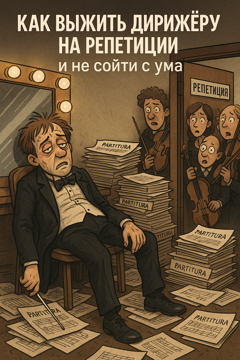 (практическое руководство от никому не известного дирижёра) Репетиция — это не просто встреча, где музыка рождается. Это поле боя, где твои великие планы сталкиваются с реальностью: «Почему у флейтиста опять насморк?», «Почему виолончелист играет как будто только что проснулся?» и, конечно, вечный вопрос — «У кого есть лишний карандаш?» ✏️ Вот несколько правил выживания, которые тебе никто не расскажет на уроках в консерватории: 1. Читай мысли, но только если они хорошие 🧠✨ Дирижёр — это почти экстрасенс. Ты должен не только слышать оркестр, но и угадывать, что они собираются сделать в следующий момент. Если же кто-то в третий раз подряд думает: «Кофе, где мой кофе?» ☕ — лучше не встревать, это уже не про музыку. 2. Метод трёх «нет» — универсальный нож 🔪 Когда концертмейстер начинает спорить про динамику, а второй кларнет пытается доказать, что его партия сложнее всех, используй: — Нет, мы не играем фортиссимо, а пианиссимо. — Нет, это не твоё соло, а общая тема. — Нет, я дирижёр, и