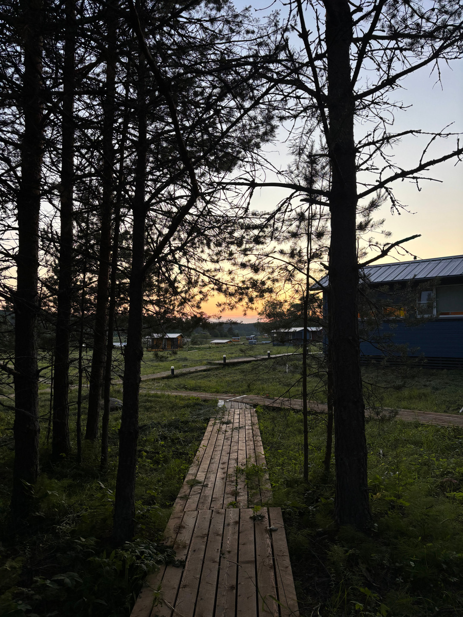 Карелия в нынешнее времена популярное туристическое направление, которые активно развивают. Вот и нам удалось посетить, недавно открывшуюся базу отдыха "Ягодная деревня", расположенную в поселке Ламберг, в 8 км от центра Сортавалы. "Ягодная деревня" располагается на двух берегах, через пролив проложен понтонный деревянный мостик, шаткая конструкция, но нас не напрягала. На каблуках будет проблематично пройти, да и кто в лес едет на каблуках. База отдыха состоит из двухместных домиков брусничного, черничного и морошкового цвета. Очень красиво выглядит. Домики небольшие, но есть всё необходимое. Две кровати или опционально их сдвигают в одну большую, стол, 2 стула, стеллаж, кондиционер, обогреватель, чайник, чай, 2 кружки, небольшой холодильник, резиновые тапочки, гель для душа, жидкое мыло, фен, пледы для вечерних посиделок на террасе, из мелочей: фумигатор от насекомых и арома-диффузор. На террасе стол и два стула, и висит гирлянда. По чистоте и наполнению, претензий нет. Из крана иде