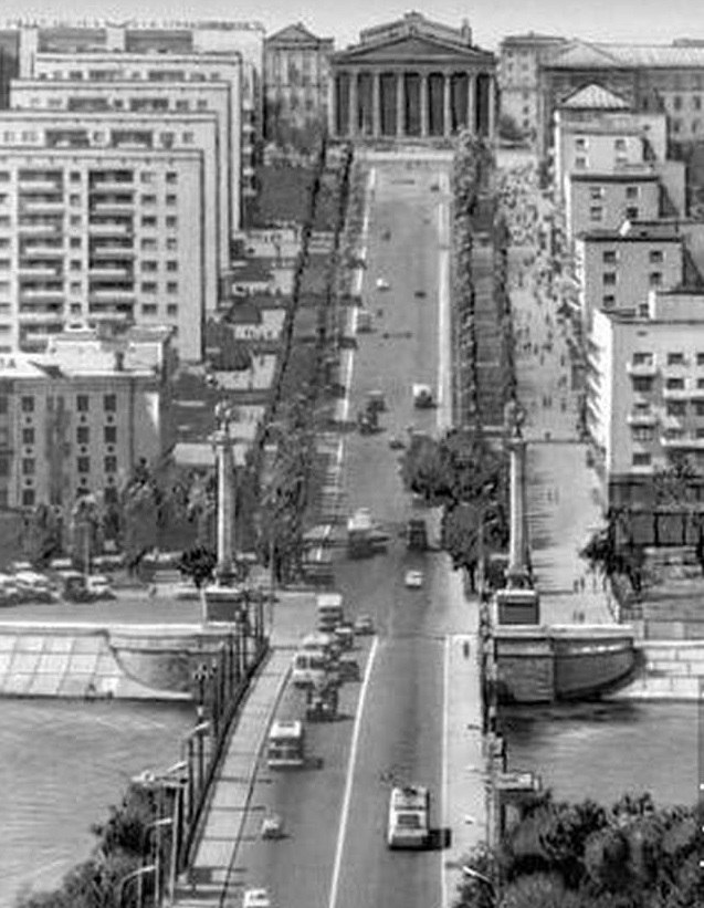 ▪️ Впервые дончане увидели проект нового моста в 1946 году на странице газеты «Социалистический Донбасс». Вскоре началось строительство, которое велось через сухую балку, впоследствии ставшую Нижнекальмиусским водохранилищем. Движение автотранспорта и троллейбусов через мост было открыто в 1953 году, официально объект сдали год спустя после установки чугунных барельефов на главных въездных пилонах. ▪️ Мост построен в стиле сталинского ампира: гранитные колонны с гербами УССР, чугунные перила, декоративные фонари на пилонах. Бронзовые барельефы изображают сцены, посвященные Великой Отечественной войне и последующему восстановлению Донбасса. ▪️ Первый мост Донецка верой и правдой служил дончанам более трех десятилетий. Начавшийся же в этом году ремонт все-таки не первый. Мало кто помнит, что еще в 1985 году на мосту выявили серьезную просадку со стороны Калиновки. ▪️ В мае того года начался ремонт, который планировали завершить к концу августа ко Дню города, но работы затянулись. Пришлос