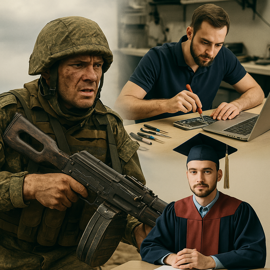 Почти год госпиталей, реабилитация, потом — демобилизация. Страх, тишина, неизвестность. Но в марте 2025 года всё изменилось. С поддержкой проекта «Моя карьера с Единой Россией» Марк открыл сервисный центр по ремонту техники. Помогли составить бизнес-план, выйти на ярмарку трудоустройства. Теперь — студент Югорского госуниверситета, изучает информационную безопасность.