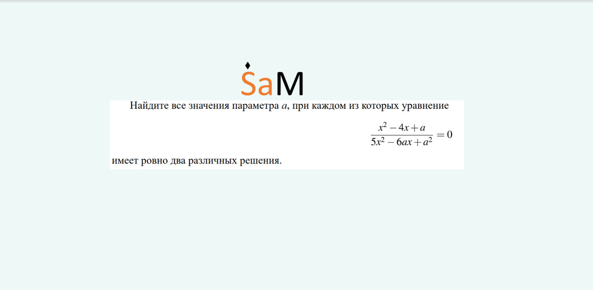 Мои каналы: RUTUBE , Vkвидео Найдите все значения а, при каждом из которых уравнение (x^2-4x+a)/√(5x^2-6ax+a^2)=0 имеет ровно 2 различных решения. Поддержите канал подпиской, лайком и кнопкой в топ или любыми другими активностями❤️ #параметры #егэ #sam