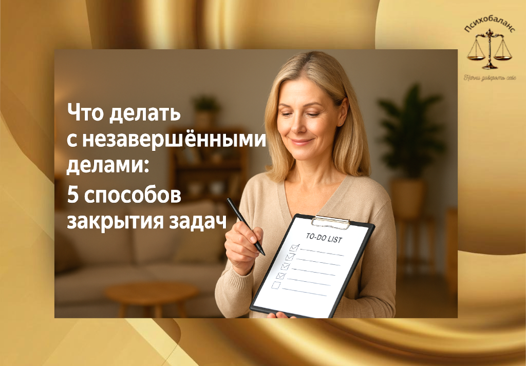 Иногда дело в том, что внутри уже нет энергии на "надо". А вот чувство вины есть. И оно тоже эту энергию продолжает потреблять. Как компьютер, который мы забыли выключить. Вроде и не мешает, но создаёт дискомфорт. Итак, 5 способов, которые помогают мне и людям, с которыми я работаю, как психолог, разорвать этот замкнутый круг. Возможно, мы не доделали что-то, потому что задачу стоит упростить. Завершить её в том