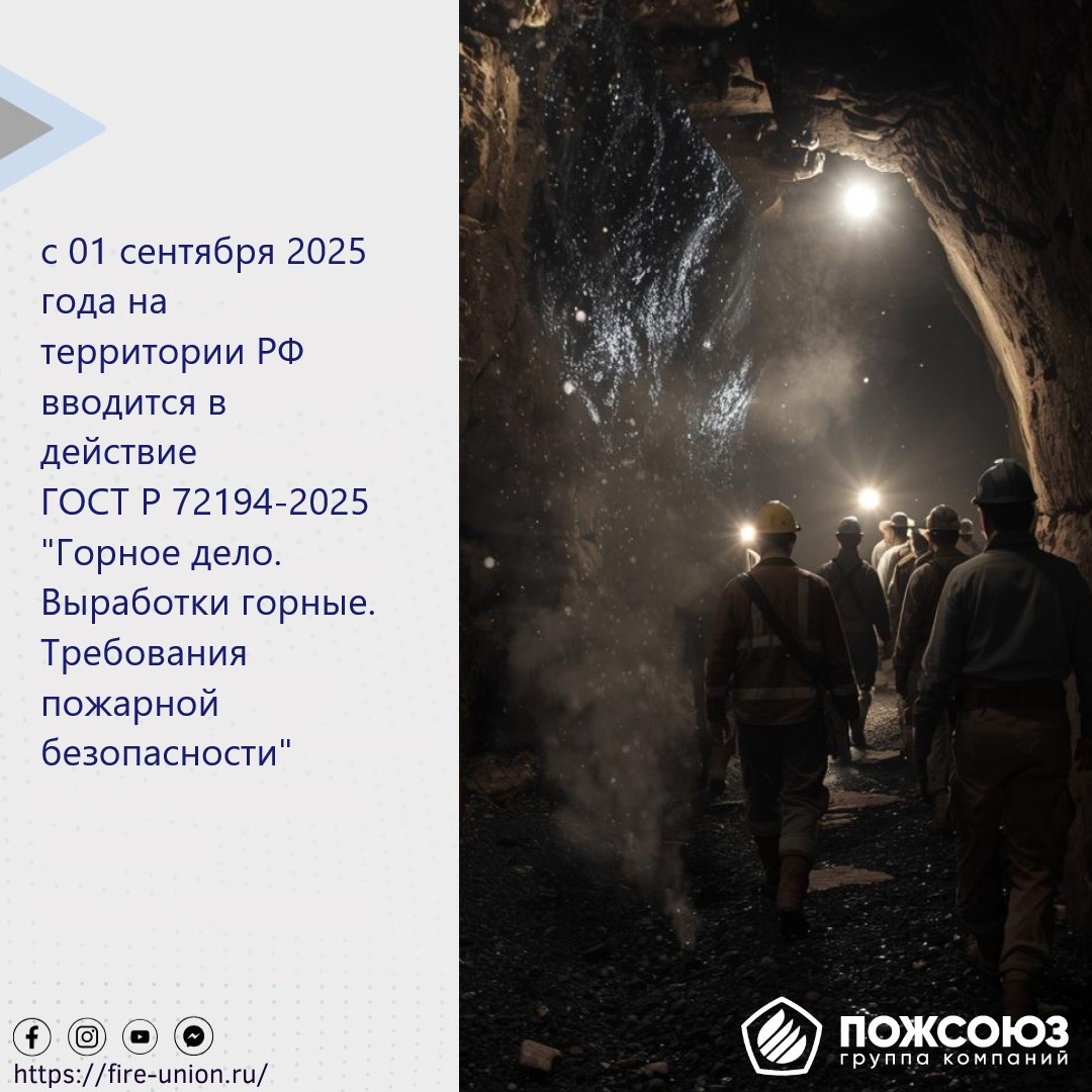 Росстандарт утвердил новый ГОСТ Р 72194-2025" Горное дело. Выработки горные. Требования пожарной безопасности", устанавливающий требования пожарной безопасности для подземных и наземных объектов угольных шахт. Документ распространяется на строящиеся, реконструируемые, действующие, законсервированные и ликвидируемые предприятия. Стандарт направлен на повышение уровня безопасности и минимизацию рисков возгораний в горной отрасли. Его положения обязательны к применению с 1 сентября 2025 года. Рекомендуем компаниям, работающим в сфере добычи угля, заранее ознакомиться с новыми требованиями и внести необходимые изменения в процессы эксплуатации и проектирования. #ПожарнаяБезопасность #ГОСТ #ГорнаяПромышленность #Нормативы2025 Источник: https://kodeks.ru/news/read/utverzdeny-novye-nacionalnye-standarty-dlia-specialistov-v-oblasti-pozarnoi-bezopasnosti