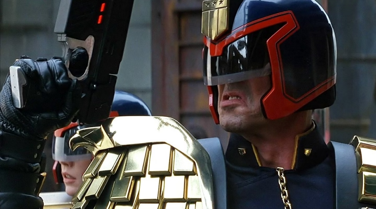 В комиксах Дредд почти никогда не снимает свой шлем, поэтому его лицо появляется лишь мельком. Но создатели фильма не могли допустить, чтобы такой известный актёр, как Сильвестр Сталлоне, не показал своё лицо в течение всего фильма.