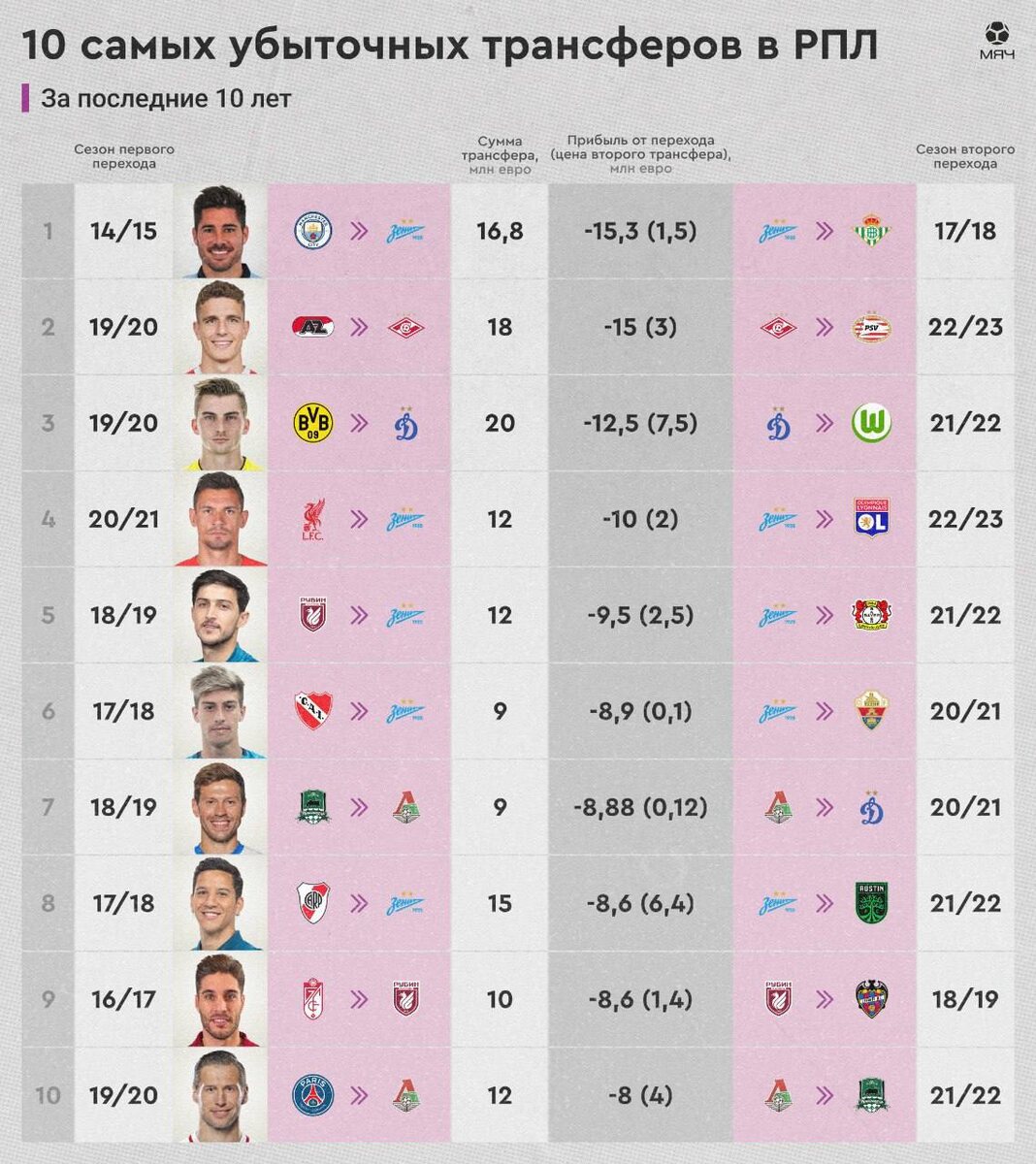 Рочина - в топ-10 самых убыточных трансферов клубов РПЛ за последние 10 лет. Купили мы его за 10 млн евро, продали за 1,4 млн евро. Но также там была аренда за 1 млн евро в Леванте, что в графике не учитывали. ❤️ Злобный Рубин ❤️