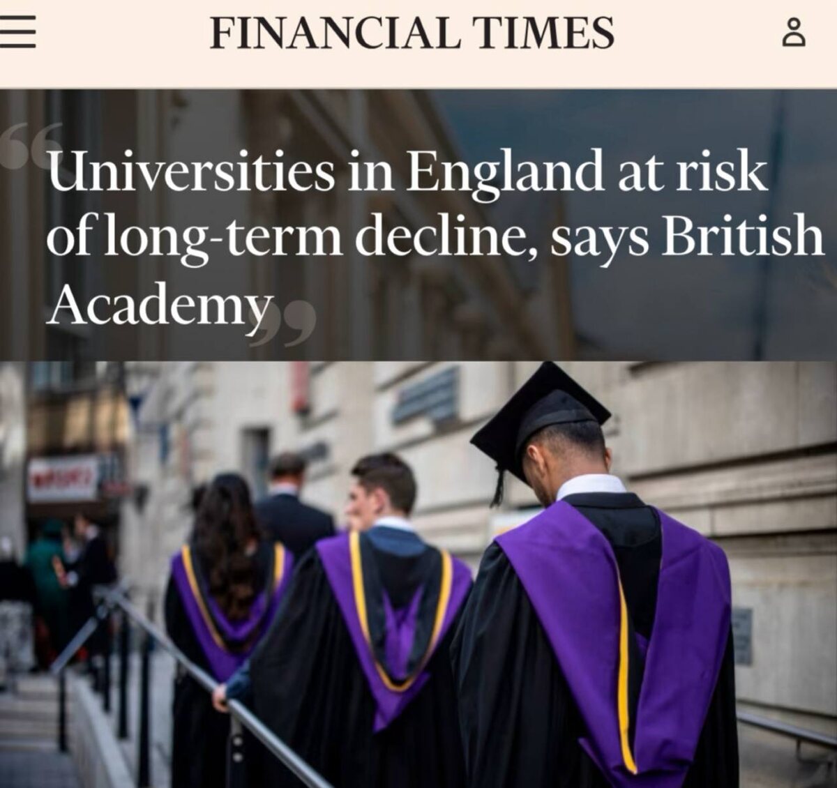 «Британская академия заявляет, что университеты Англии находятся под угрозой долгосрочного упадка»: Британцы массово отказываются от высшего образования.
