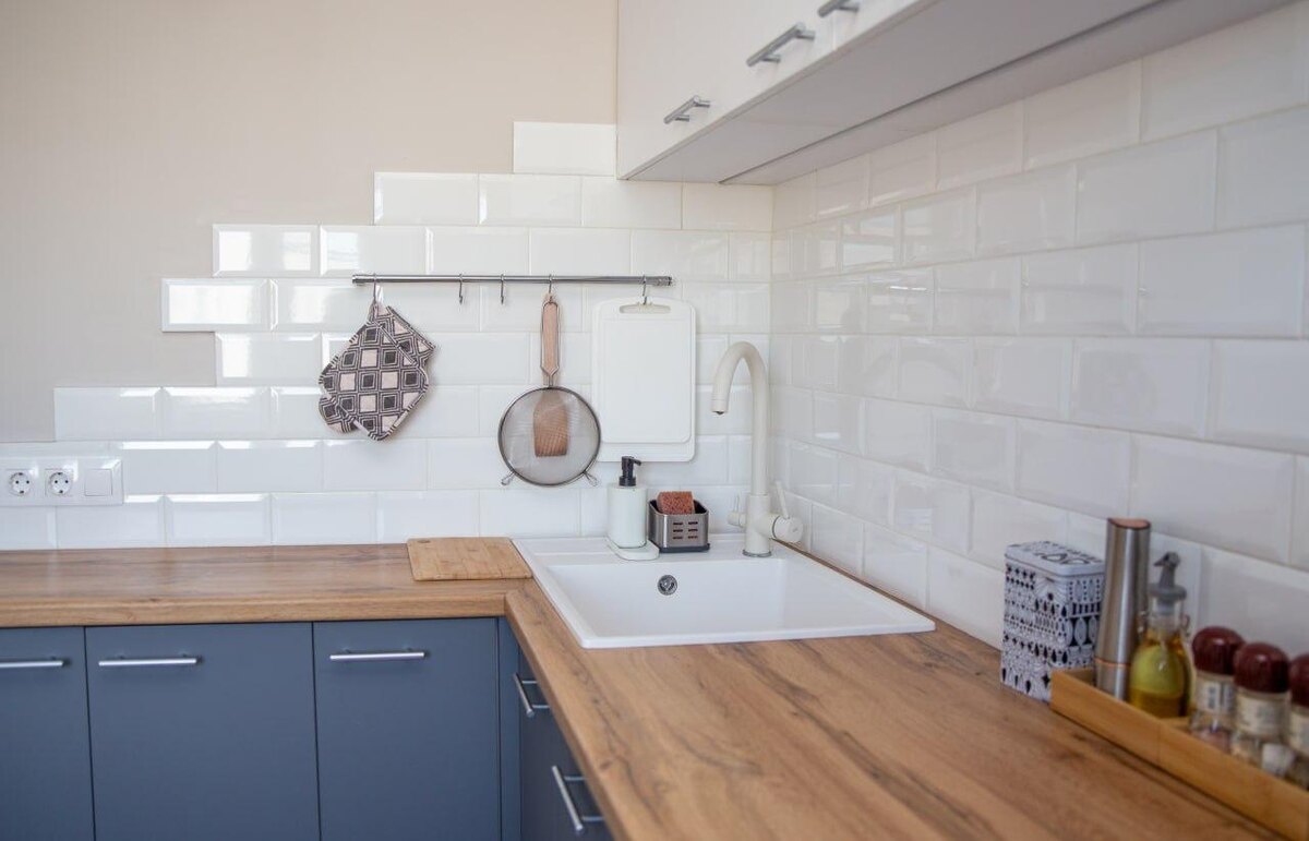 Кухня, выполненная по нашему дизайн-проекту, — воплощение скандинавской сдержанности, в которой каждая деталь дышит теплом и заботой. Нижние шкафы в оттенке мягкого серого создают уверенную, но ненавязчивую основу, а белые верхние модули будто растворяются в пространстве, подчеркивая воздушность и чистоту композиции. Особое внимание притягивает столешница — насыщенная, выразительная древесная фактура наполняет интерьер жизнью и тактильной теплотой. Белая плитка, раковина и смеситель лишь усиливают ощущение ясности и порядка, не отвлекая от главного — уюта, который здесь чувствуется в каждом штрихе. Это не просто кухня, а пространство, где хочется остановиться, сварить кофе, прислушаться к утренней тишине и почувствовать, что дом — это место силы.