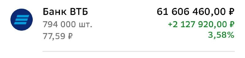 Тем кто не верил в ВТБ его цена без дива была 71… ценник уже 77