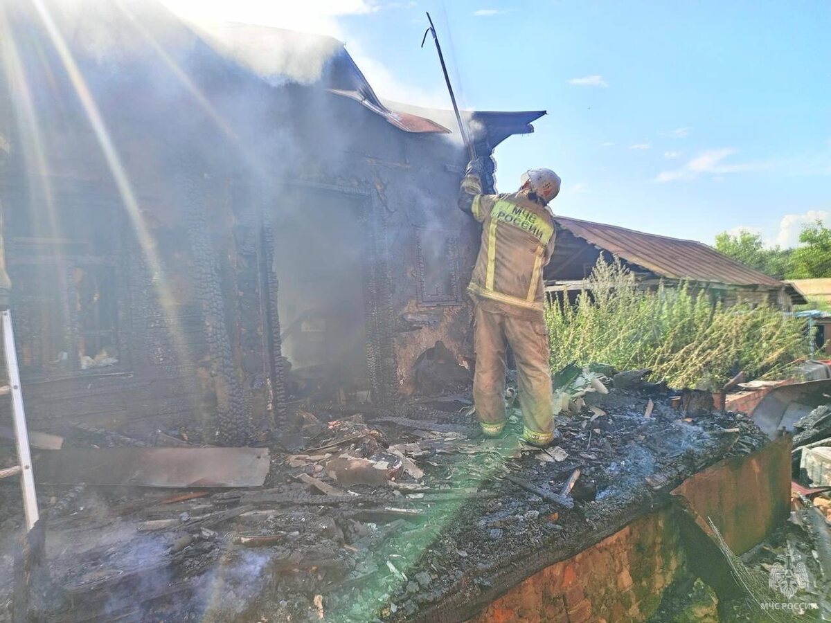 Сотрудники МЧС России ликвидируют пожар в Верхнем Ломове