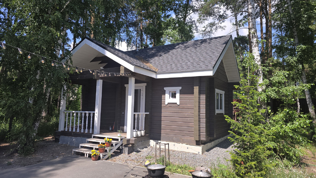 - Цвет кровли и фасада дома часто выбирается с оглядкой на баню, чтобы визуально объединить строения.