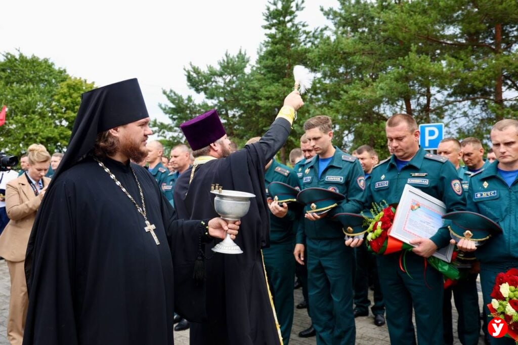 Торжественное мероприятие по случаю открытия нового здания Червенского районного отдела по чрезвычайным ситуациям прошло 15 июля в г. Червене. На церемонии присутствовали почетные гости: министр по чрезвычайным ситуациям Республики Беларусь, генерал-майор внутренней службы Вадим Синявский, председатель Минского областного исполнительного комитета Алексей Кушнаренко, а также председатель Червенского районного исполнительного комитета Владимир Новицкий. В церемонии приняли участие духовные наставники района: благочинный и.о. Червенского церковного округа, священник Григорий Целков, а также настоятель Никольского храма г. Червеня, иеромонах Гедеон (Фоменко). Священнослужители совершили чин освящения личного состава отдела, окропив всех святой водой и благословив на дальнейшее несение важного и ответственного служения во благо общества.