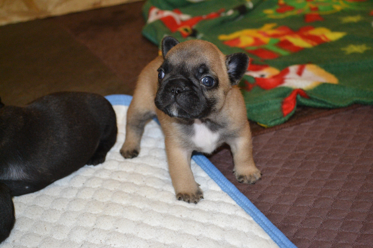 Как быстро пролетело время! Кажется только недавно мы принесли домой их в коробочке из под кошачьего корма. А вот уже бегают и делают друг другу кусь. Они как то резко начали есть прикорм и бегать. Поднялись на ножках, лучше двигаются. Играют с друг другом и игрушками. То что щенки хорошо растут и развиваются, думаю видно и непрофессионалам. Они все также сосут маму, но и начинают есть размоченный корм и мясные консервы индейку. Я обработала их от простейших и два раза от глистов. По схеме, так положено. Я детками довольна. Мне кажется самые красивые из всех. Все таки хорошие крови дают о себе знать. По отзывам заводчиков тоже помет хороший. Удачно крови легли, хоть и кроссовая вязка. Щенков активно спрашивают и несомненный фаворит по запросам Уголек. Я тоже считаю его самым перспективным из мальчиков. Квадратный, компактный с большой красивой головой. И это самый дорогой щенок помета. Хотела их продавать по одной цене, но считаю это несправедливым. Ну разные они Моя любимица, как и