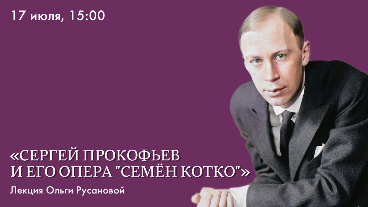 17 июля в 15:00 в Бетховенском зале пройдёт лекция «Сергей Прокофьев и его опера “Семён Котко”» Ольги Русановой, музыкального обозревателя «Радио России» и радио «Культура», музыковеда, журналиста и критика. В сообществе Большого театра ВКонтакте будет организована онлайн-трансляция этой лекции. Вход на лекцию — по регистрации. Чтобы зарегистрироваться, необходимо отправить заявку на адрес lecture@bolshoi.ru до 12:00 17-го июля (в заявке необходимо указать фамилии, имена и отчества всех, кто планирует прийти на лекцию).