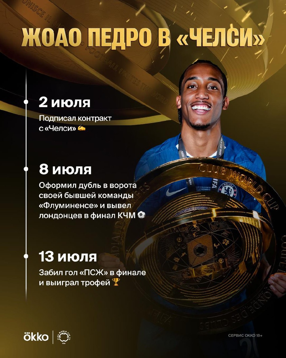 Июль — успешный месяц для Жоао Педро. Уже не зря перешел в «Челси» ⚽️ Прошло всего 11 дней с момента подписания контракта с «синими» до победы на КЧМ. Мгновенный результат. ⚡️ — будет играть в старте весь следующий сезон!