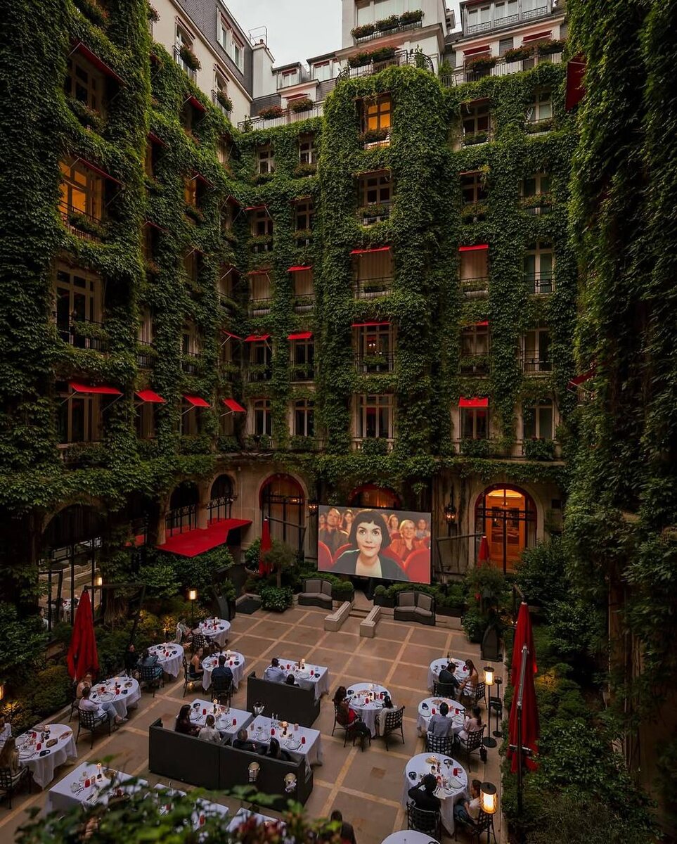 находится в Париже, в саду пятизвездночного отеля Plaza Athéné. Билет стоит аж 300 евро, но зато помимо роскошного сада, в стоимость входит специальное меню в тематику фильма. В репертуаре классика: «Индиану Джонса», «Казино Рояль», «Властелина колец» и другие