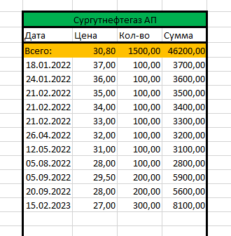 В последний раз я покупал их в начале 2023 года, а в основном все покупки пришлись на 2022-й, тогда сформировалась очень низкая средняя цена 30,80 рублей.
