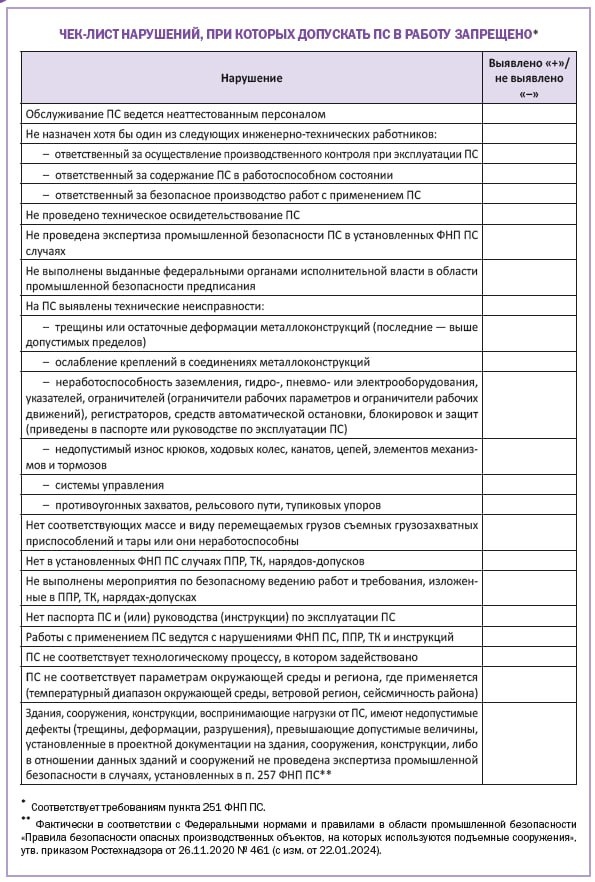 ✏️ Чек-лист нарушений, при которых допускать ПС в работу запрещено