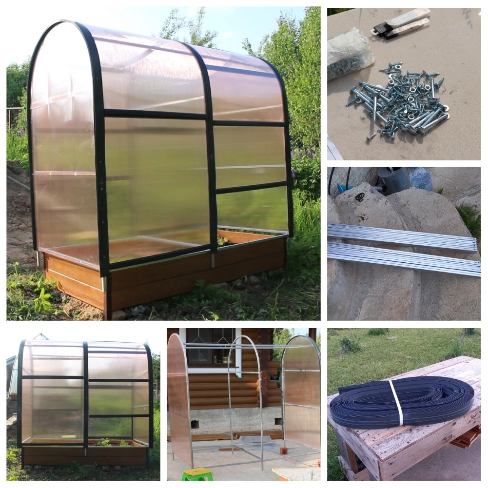 Помимо теплицы мы установили также парник. Парник я купила уже готовый еще осенью прошлого года, и устанавливали мы его сами. На этот раз обошлось без привлечения специализированных фирм и специалистов. Дети сами разобрались, что к чему присоединяется и как в итоге получается. Размеры парника 2 метра на 1 метр и в высоту почти 2 метра. Получается своего рода мини-теплица из поликарбоната. Он так же, как теплица, имеет алюминиевую конструкцию, на которую крепится кровельными саморезами поликарбонат. Инструкция по сборке парника дана очень сжатая. В интернете можно найти видео о том, как он собирается. И все же нам, новичкам, было непросто. С комплектацией нам, можно сказать, повезло. Я читала в отзывах, что иногда чего-то не хватает. Производители, правда, охотно досылают недостающие элементы. И все же это тормозит работу. У нас немного просчитались с саморезами определенного размера. Но по счастливой случайности, у нас в строительных запасах нашлись аналоги. Так что потери мы особо не