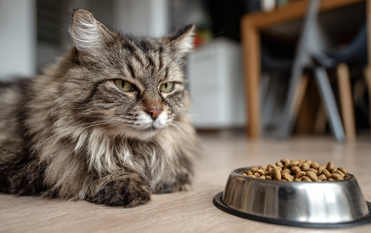 С другой стороны, малые порции вызывают дефицит питательных веществ, проявляющийся тусклой шерстью, вялостью и ослабленным иммунитетом — особенно у активных или беременных кошек.