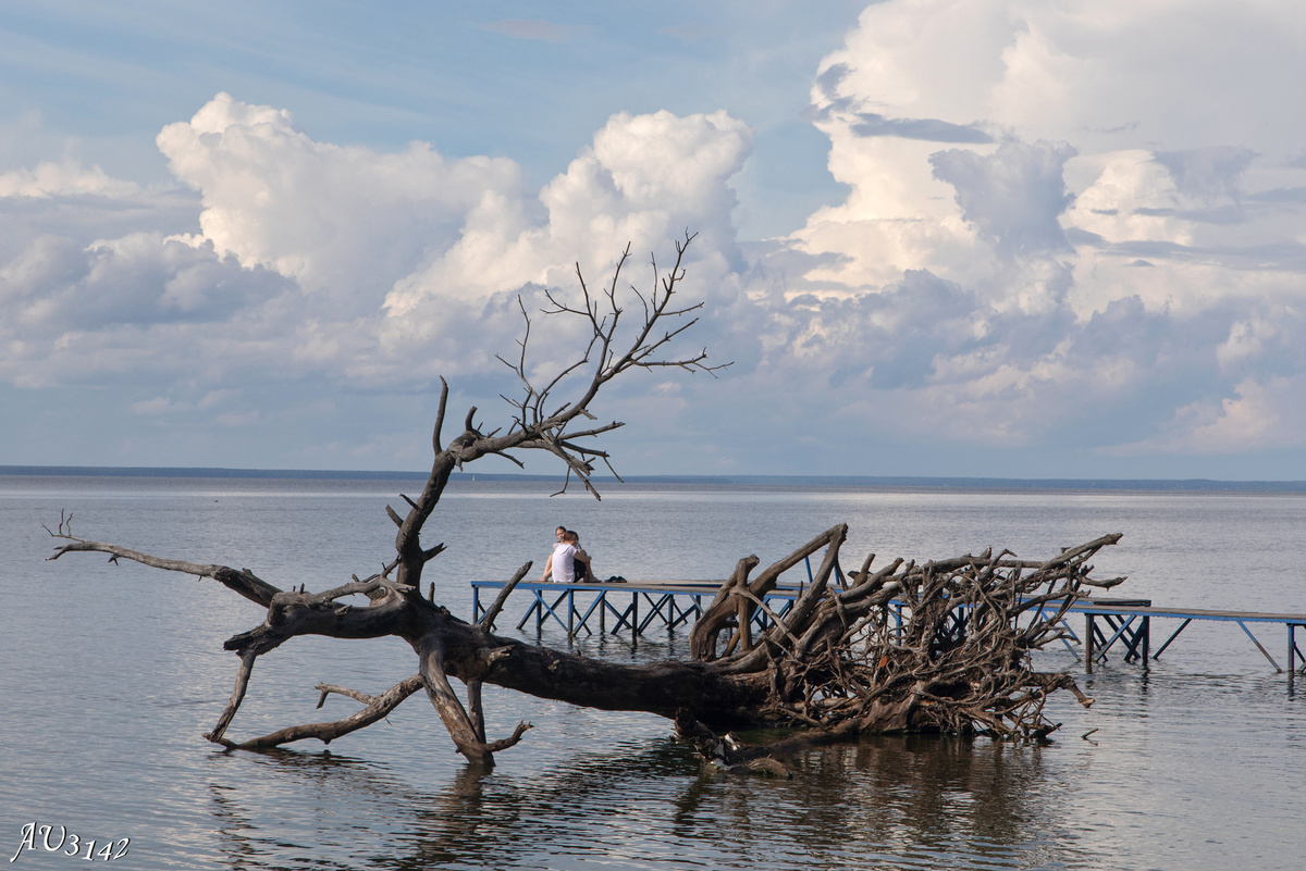 Пермское лето переменчивое, внезапное, непостоянное, ветреное, временами засушливое и жаркое или дождливое и порой холодное, а иногда даже морозное. При этом мы всегда его ждём с нетерпением... В непредвиденный выходной на трудовой неделе, несмотря на обещанный синоптиками дождь, мы решили съездить к заветной заводи в царство кувшинок в посёлке Нижний Лух... Сказано – сделано! Приехали, а там пасмурно, сыро и прохладно, как осенью. Только слепни, оводы, комары да мошки всякие нас радостно встречают, а кувшинки под водой попрятались, дождика испугались... Урал! Недолго думая, собрались мы домой ретироваться. По пути решили в Бор-Лёнву заехать. Дорогой нас сильный ливень сопровождал, с правильного курса сбивая... Нежданно-негаданно, как по волшебству, тучи расступились, точно занавес в театре. Мы из машины в Бор-Лёнве вылезли: жара, мошкара надоедливая исчезла, красота. Небо бездонное, облака плывут белоснежные, солнышко улыбается... Курорт просто! Тепло, светло и мухи не кусают. Вокруг