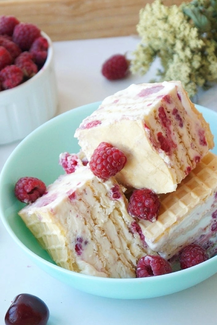 🍦Вафельный торт-мороженое🍦 Дети и взрослые в полном восторге! Делается за 10 минут, не будет даже пошаговых фото — настолько всё элементарно. А вкус потрясающий! Не жирный и не пересладкий (компенсируют вафельные коржики и кислые ягоды). Вкуснее всего в слегка подтаявшем виде. Не течёт ☝️ Залейте шоколадной глазурью— я не догадалась))) А по вкусу просилось. На один торт диаметром 25см, высотой 6 см: — 500г сливок для взбивания 33-35%, — 1 упаковка вафельных коржиков (продаются во всех гипермаркетах, в отделе с готовыми бисквитными коржиками, примерная цена 50-80р), — 1 банка сгущёнки 400г (качественной!) — 200г наполнителя по вкусу — ягоды, шоколад, орехи, изюм. — 1 плитка молочного шоколада + немного молока для глазури — по желанию. 1) 500г сливок хорошо охладить. Не морозить! 2) Можно собирать торт без формы — но красивее будет в форме. Подготовьте форму для сборки — удобнее разъемное кольцо. Дно не заклеивать — ничего не вытечет. На дно укладываем первый вафельный коржик