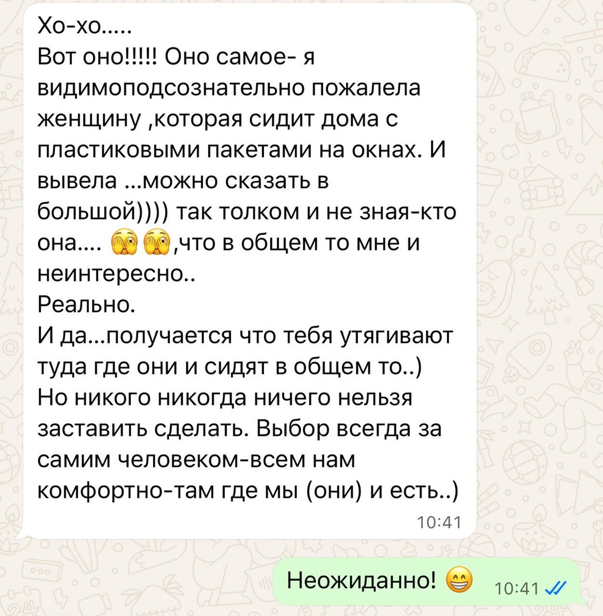 Вот так вы пытаетесь и нас туда же, к себе. А мы - другие. Мы можем себе позволить прислать билеты совершенно незнакомой женщине, узнав, что она спит на полу и в жару у неё занавески из черных пластиковых пакетов.