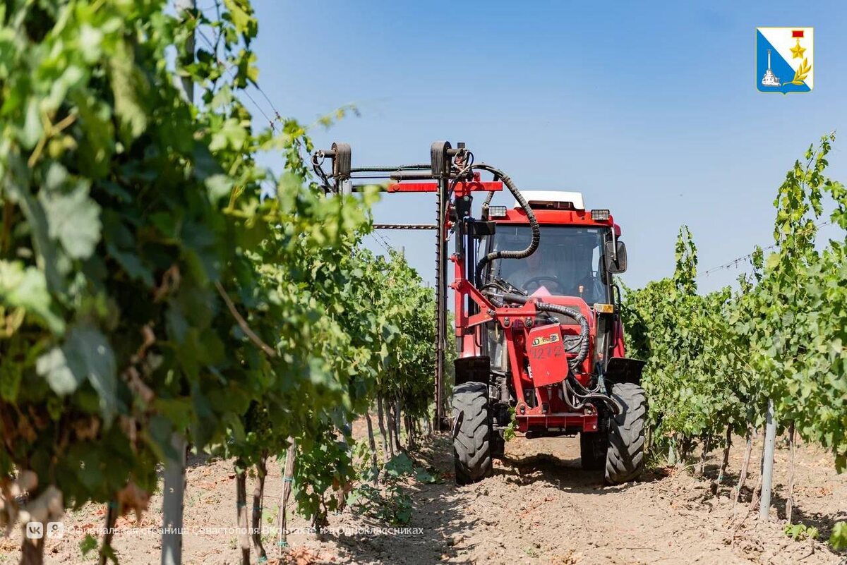 Виноделы обновляют технику благодаря господдержке С 2014 года на отрасль выделено 3 млрд рублей, а большая часть виноградников города заложена при активном участии государства. В этом году закуплено 2 современных комбайна для сбора винограда. Они заменяют труд 100 человек. 🍂Новые меры поддержки с 2025 года включают субсидии на уход за виноградниками старше 4 лет. Благодаря этому «Золотая Балка» получила 970 млн рублей, обновила 1000 га виноградников и установила систему орошения на 125 гектаров. Правительство Севастополя