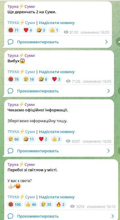 В Сумах сейчас прилеты - ФАБы/Герани. Местные вспоминают великий и могучий