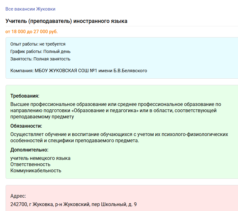 В дождливую погоду учителю-пенсионеру разные приходят мысли, в том числе — и о подработке к пенсии. А, ну-ка, думаю — поищу-ка я вакансии в соседнем районе. Город всё-таки и на дизеле 36 минут всего ехать. Интересно стало. Здравствуйте, дорогие читатели! Вижу, что учителя в районе, что по соседству с моим посёлком, в нашей Брянской области требуются, как и требовались, кстати, пять лет назад. И вот что им предлагается: Да уж... Уходила я из школы с зарплатой 16 тысяч за полторы ставки в 2020 году. В 2025 году почти ничего не изменилось, к сожалению. До чего же нужно не уважать учителей, чтобы платить им такую зарплату. А мне не уважать себя, свой опыт, навыки и умения, чтобы пойти работать полный рабочий день, при полной занятости за такие деньги. Желание подрабатывать в школе сразу улетучилось. Не только учителям иностранного предлагают такое унизительное жалование, но и всем другим предметникам: А вот что выдаёт Интернет: Средняя зарплата учителя в Брянской области составляет 31 489