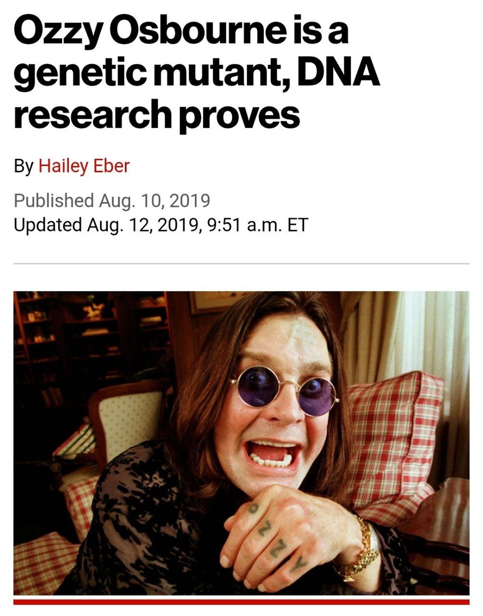 На смерть Оззи Осборна вспоминаем один из самых безумных фактов про музыканта — его на полном серьёзе считали мутантом. Учёные хотели узнать, в чём секрет его бессмертия и как он смог прожить так долго, несмотря на десятилетия злоупотребления алкоголем. Учёный Билл Салливан выяснил, что в генах рокера и правда есть мутация, которая позволяет ему пить куда больше, чем обычным людям. «Оззи действительно генетический мутант», — заключил Салливан. мы знаем другое: фигура Оззи — точно бессмертна ❤️