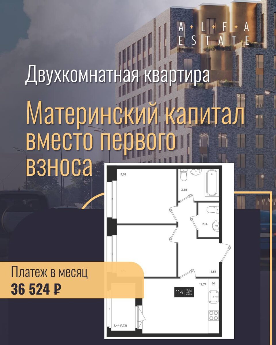 ➡️Первоначальный взнос подходит по сумме материнского капитала — вы можете внести первый взнос именно им, что существенно облегчает покупку.