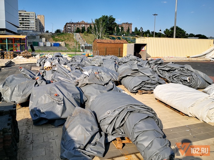 Собственники кроп-арены в пойме реки Царица в парке «Раздолье» в Волгограде со дня на день готовятся освободить занимаемую территорию по просьбе муниципалитета. Как сообщает V102.RU, в настоящее время от многофункциональной концерно-выставочной площадки ничего не осталось - её сдули и скрутили в рулоны.