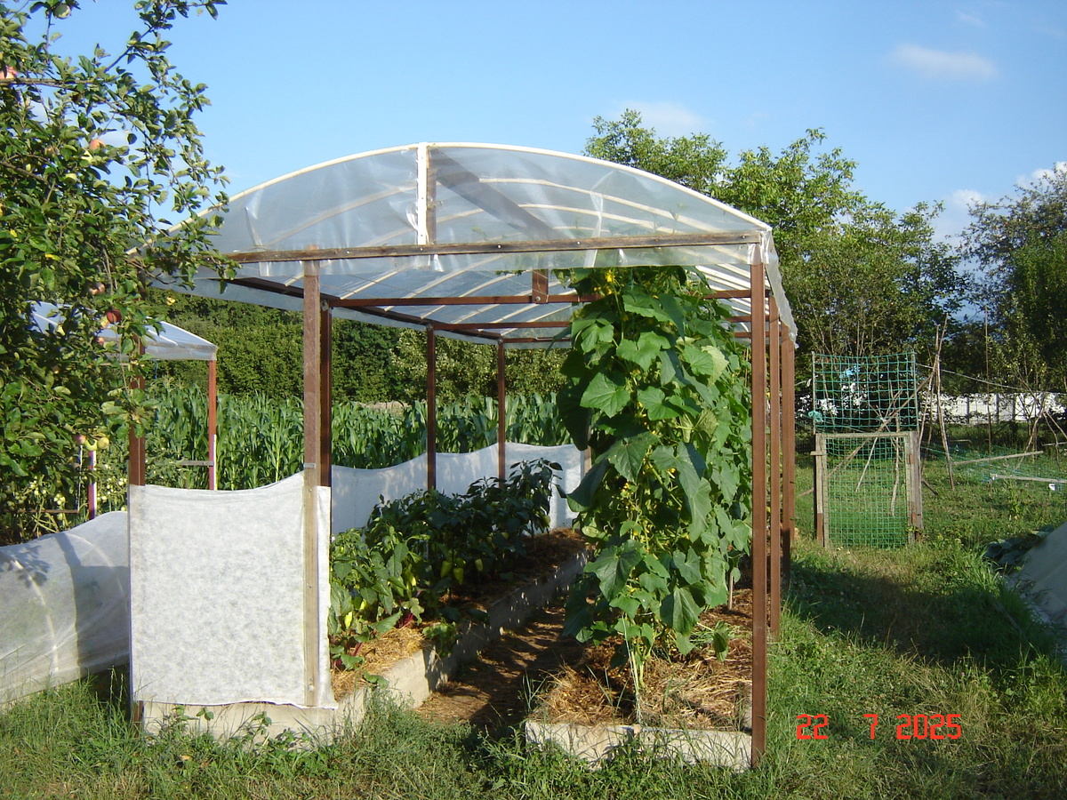 Всегда теперь мы выращиваем перец не только под навесом, но и огораживаем его с трех сторон агроспаном. Перец, на удивление, не любит яркий прямой солнечный свет, ему подавай рассеянный и, заодно, легкий застой воздуха, в отличии от помидор.