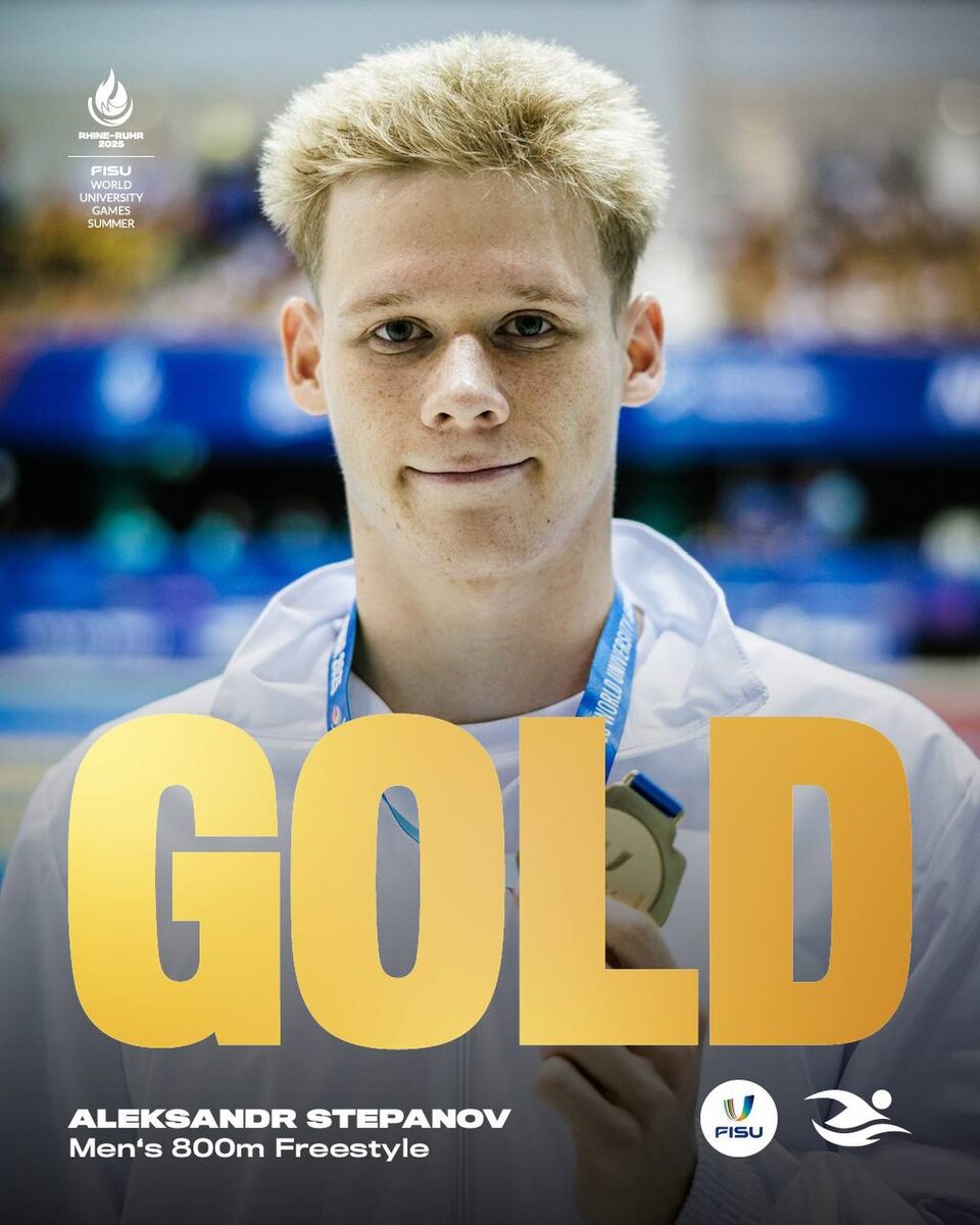 Александр Степанов завершил финал дистанции 800 вольный стиль с результатом - 7:46.51 Это второе золото Александра на играх, первое он завоевал на дистанции 1500 вольный стиль 👈🏻 1. Alekandr Stepanov - 7:46.51 2. Tommasso Griffante - 7:50.50 3. Ryan Erisman - 7:51.74 Все результаты финальных заплывов 👈🏻 📸 FISU