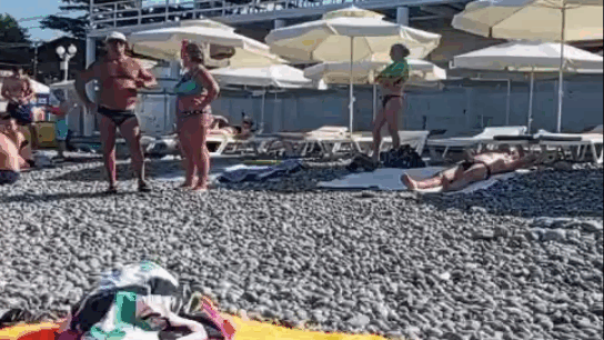 Опубликовала ролик с пляжем в Сочи. И вот что мне пишут: Я когда-то опубликовала свое фото на пляже. Недовольны были комментаторы: лица не видно. Кстати, обратите внимание на то, на чем люди расположились на пляже. Слово "вой", конечно, чересчур сильное. Но про коврик и правда писали: Вообще-то есть специальные коврики для таких пляжей, как в Лазаревском. Они не нагреваются, не промокают, с мягким наполнителем внутри. На нем лежишь и кажется, что лежишь на песке. На мягком и прохладном песке. Про то, что все занято и никуда не воткнешься, как пишут. Мы в 6 утра занимали место. Раскладывали коврик и уходили. Приходили, когда нам было удобно. Ближе к 12 народ уходит на обед. С 12:00 до 15:00 очень жарко, народу меньше. Примерно с 18:00 опять очень много народа. Это катер для парасейлинга. Это видно и по надписи. Надувная горка с бассейном для детей- неплохое развлечение, правда? Горки на пляже. Платные, цену не узнавала. Дети обгорят несомненно, если их сразу долго держать на солн