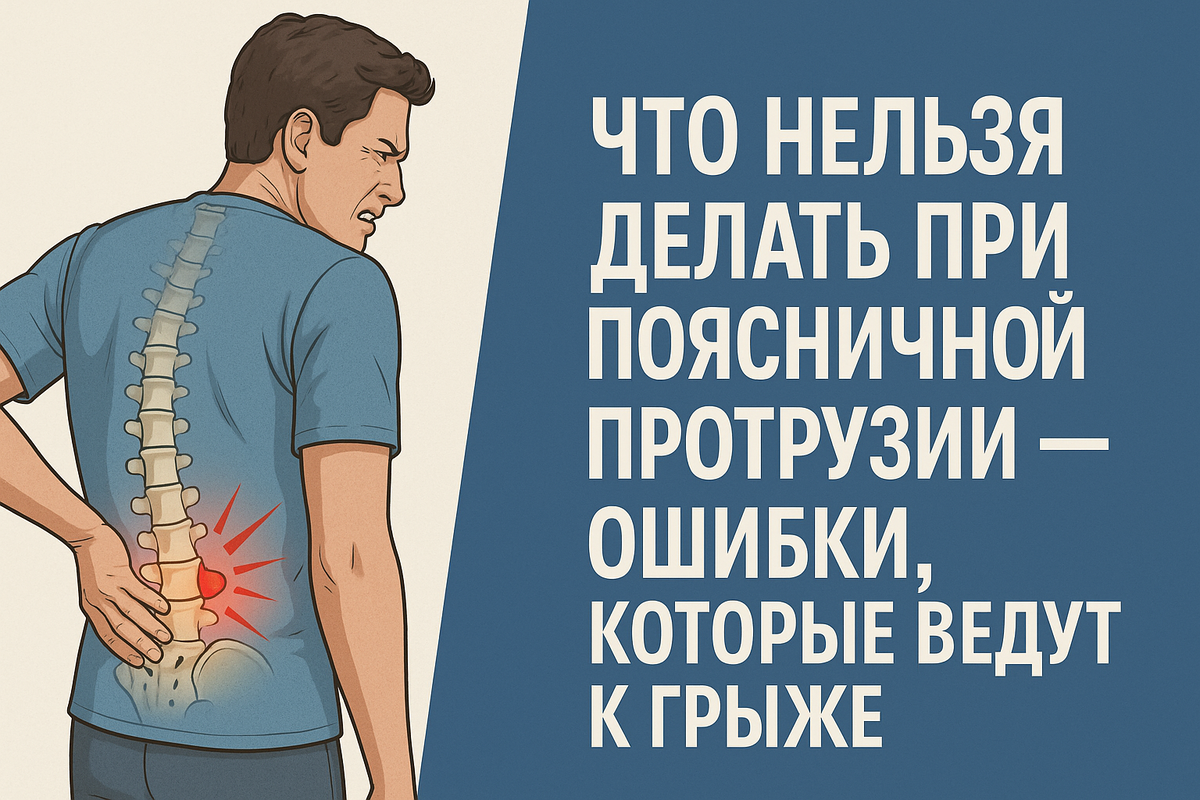 Протрузия межпозвоночных дисков в поясничном отделе позвоночного столба – это частое осложнение длительно протекающего дегенеративного дистрофического процесса в хрящевых тканях межпозвоночных дисков. По сути это снижение высоты межпозвоночных дисков с выходом их за пределы тел разделяемых позвонков. И это очень опасно по целому ряду факторов. О том, что нельзя делать при протрузии поясничного отдела позвоночного столба – расскажем в этом материале.