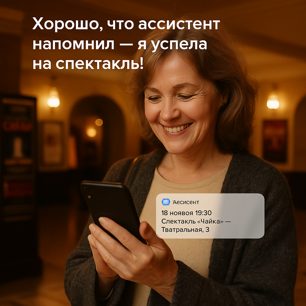🎭 Спектакль не пропустили, потому что ассистент напомнил