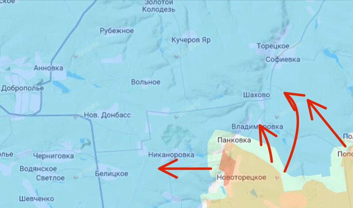 Российская армия продолжает давить на район с. Шахово на северном фланге Красноармейского направления. Взятие под контроль этого села позволит физически перерезать трассу Доброполье-Дружковка - одну из основных артерий снабжения группировки ВСУ. В Константиновке. Также идут бои за Владимировку и Никоноровку. От Никоноровки отрывается путь на г. Белицкое, контроль над которым позволит перерезать трассу Доброполье-Красноармейск. Подпишись на Телеграм Александр Семченко
