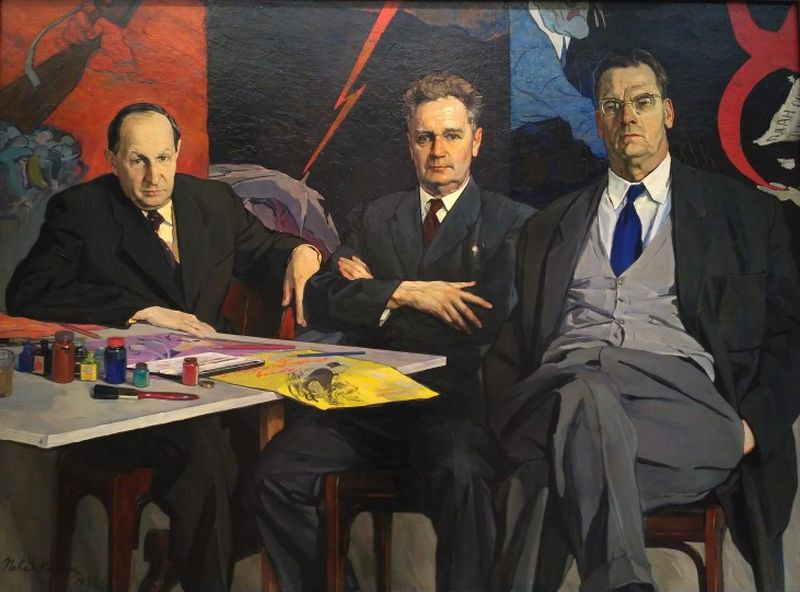 Павел Корин (1892—1967). Портрет художников Кукрыниксов. 1957. (Слева направо — Крылов, Соколов, Куприянов)