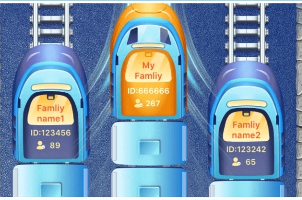 Внутри каждого поезда написано название семьи и сколько человек сейчас играет. Например, на картинке ниже в вашей семье 267 человек, у соперника слева 89 человек, а у соперника справа 65.