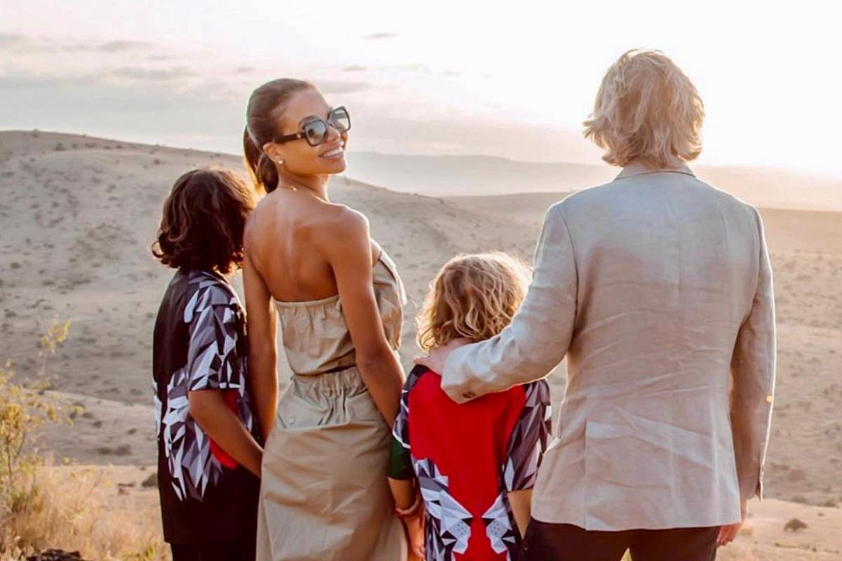 пейзажи, слоны, джипы и роскошные наряды. Всё бы ничего, но лица сыновей пары вновь оказались скрыты — и это уже